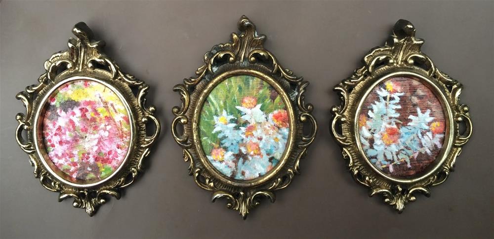 The surface is acid-free mat board with three layers of sanded gesso. I toned the surface with a very thin coat of burnt sienna. I use water soluble oils, to protect my lungs from chemicals in turpentine and to make cleanup easy.